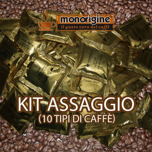 Proponiamo questo "Kit Assaggio" per soddisfare le numerose richieste che ci pervengono riguardo la possibilit di potere provare la qualit dei nostri caff selezionati.Con questo kit potrai quindi renderti conto delle varie differenze di gusto e aroma dei nostri caff monorigine selezionati dalle pi diverse origini e provenienze. In questo kit riceverai 100 cialde (10 tipi di caff) da noi prodotto tostato artigianalmente, tra cui: Columbia Medellin; Costarica Don Roberto Terrazu; El Salvador Primium; Etiopia Sidamo; Guatemala SHB Oroplus; Honduras SHG Tucan Verde; Indiano Plantation AA; Kenya AA FAQ; Messico Maragogype; Nicaragua Matagalpa; Per Cuzco; San Domingo Barahona AA; Santos Brasile Genuine Cerrado; Santos Brasile Guaxup Dulce; Miscela esclusiva "Soft"; Miscela esclusiva "Strong".Le classiche cialde compatibili E.S.E. con la maggior parte delle macchinde di caff a cialde sul mercato. Lo standard E.S.E. una garanzia per il pubblico che le cialde posseggono i requisiti e le specifiche tecnciche proprie e determinate nello statuto a tutela della qualit. La cialda E.S.E. ha una dimensione di 44 mm di diametro.I nostri caff hanno l'importante caratteristica di usufruire di una torrefazione di tipo artigianale, dove solo con l'esperienza e un controllo umano si ottiene la selezione del livello ottimale della tostatura stessa. La riuscita della torrefazione sta infatti nell'equilibrio che si riesce a raggiungere fra tempo e temperatura.
