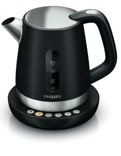 Il bollitore Avance Collection HD9380/20 di Philips propone una potenza di 2400W e una capienza di 1 L.Questo modello intelligente permette di adattare la temperatura dell'acqua al tipo di bevanda grazie ai 5 pulsanti pre-programmati : selezionando 40, 80, 90 o 100, potrete preparare t, caff solubili, tisane o zuppe. L'indicatore 1 tazza permette di far bollire solo la quantit di acqua necessaria.La funzione "thermos" utile per mantenere l'acqua alla temperatura di regolazione pre-programmata.Anche il riempimento di questo bollitore senza fili pratico, e si effettua tramite il coperchio o il beccuccio. Il bollitore Philips HD9380/20 un modello di sicurezza e di comfort poich posside un sistema di sicurezza su 4 posizioni.